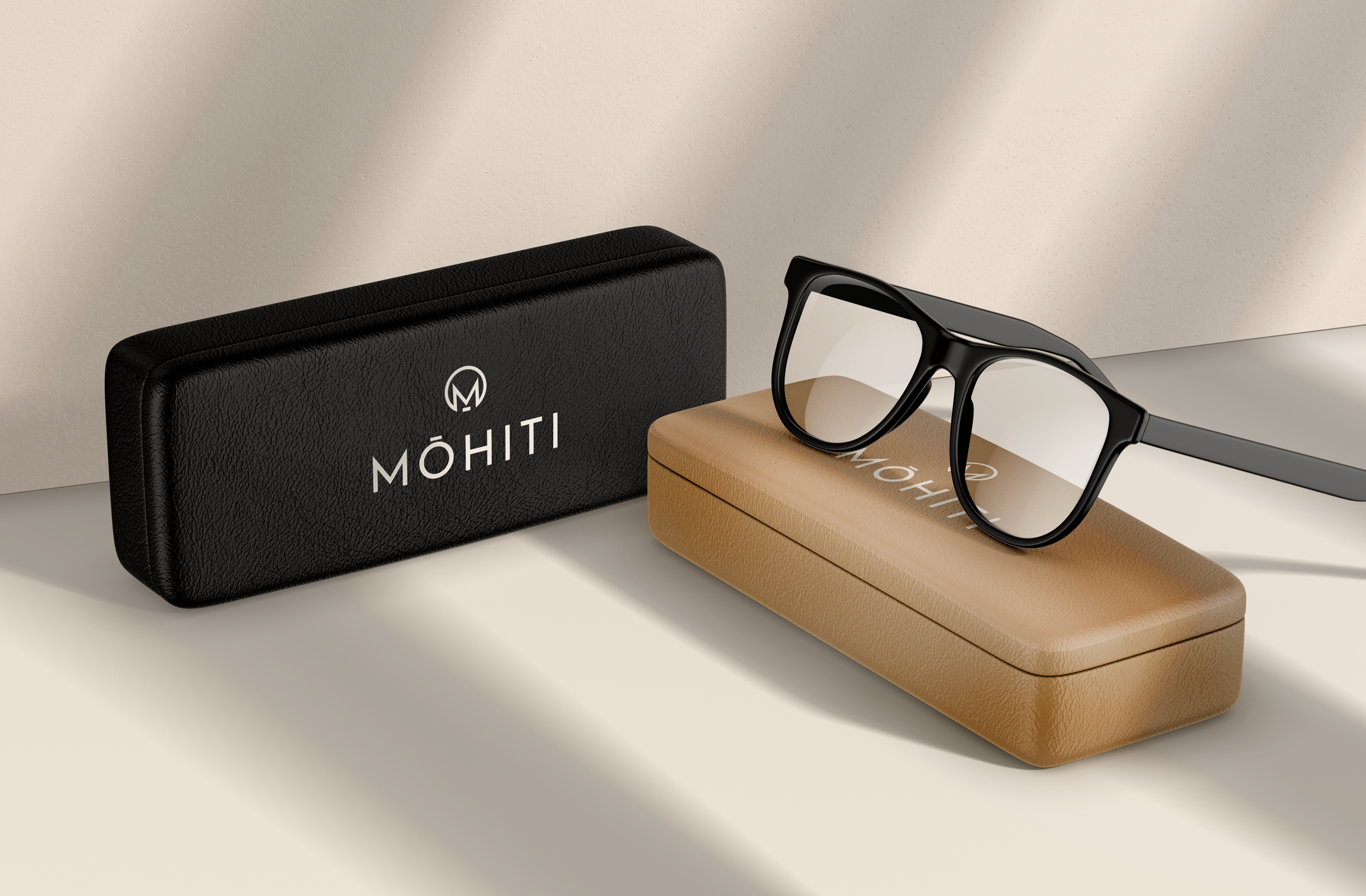 This classic, minimalistic brand identity and exclusive packaging was crafted for an eyewear brand, combining black and beige accents for a touch of luxury.