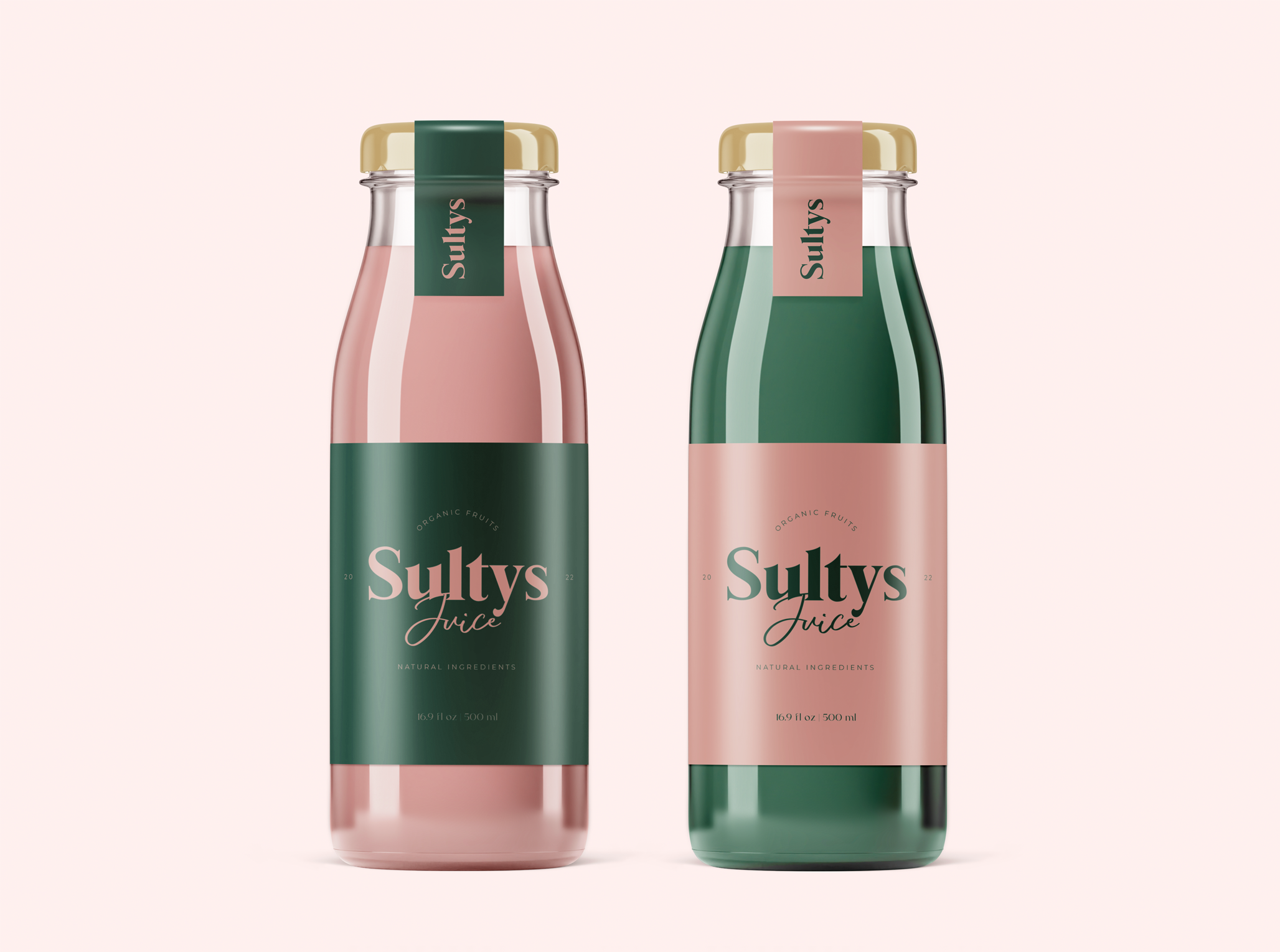 With an emerald green and pink colour palette embodying a refined and youthful personality, Sultyβs brand identity shows its commitment to providing nourishing juices with irresistible flavour in eco-friendly packaging.